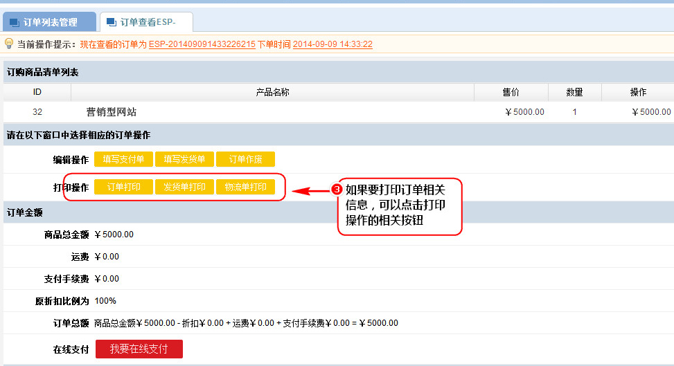 3、如果要打印訂單相關信息,可以點擊打印操作的相關按鈕。