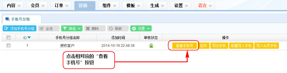1、在手機(jī)號(hào)分組列表區(qū),點(diǎn)擊相對(duì)應(yīng)的“查看手機(jī)號(hào)”按鈕;