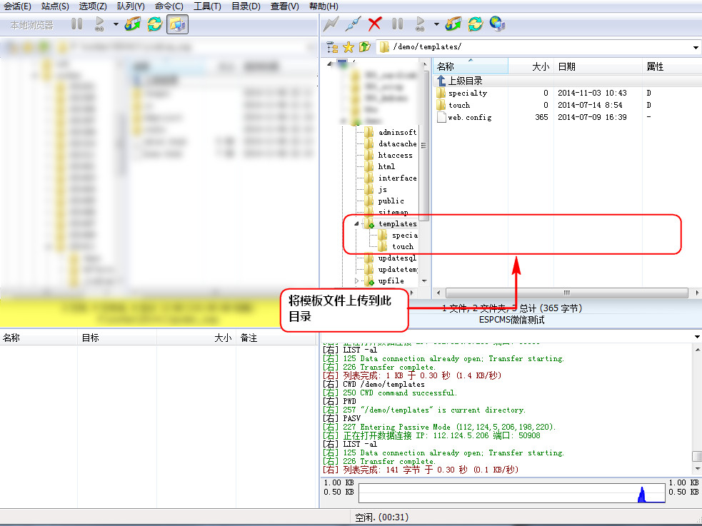 1、使用FTP軟件或其它方式將做好的網站模板文件上傳致網站的templates目錄中,主題文件夾名稱必須為英文或者數字;