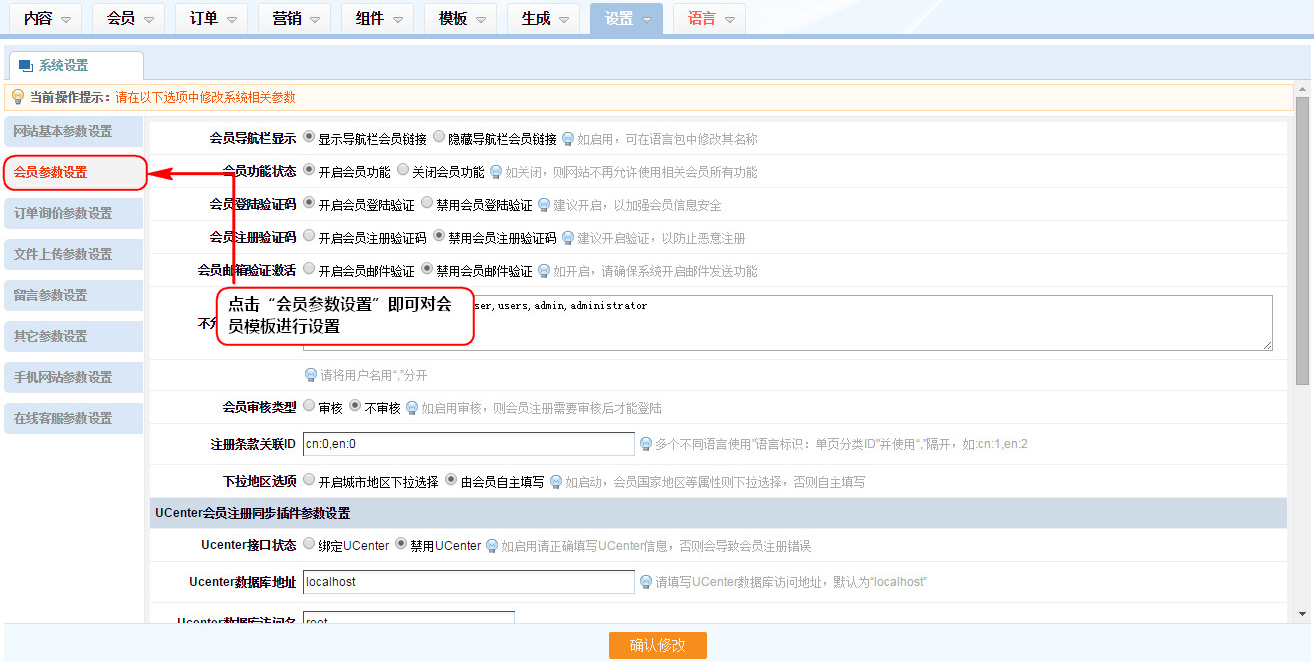 5、會員郵箱驗證激活:如開啟,會員在注冊后,需要通過郵件對會員進行激活,開啟后請確保系統開啟郵件發送功能;