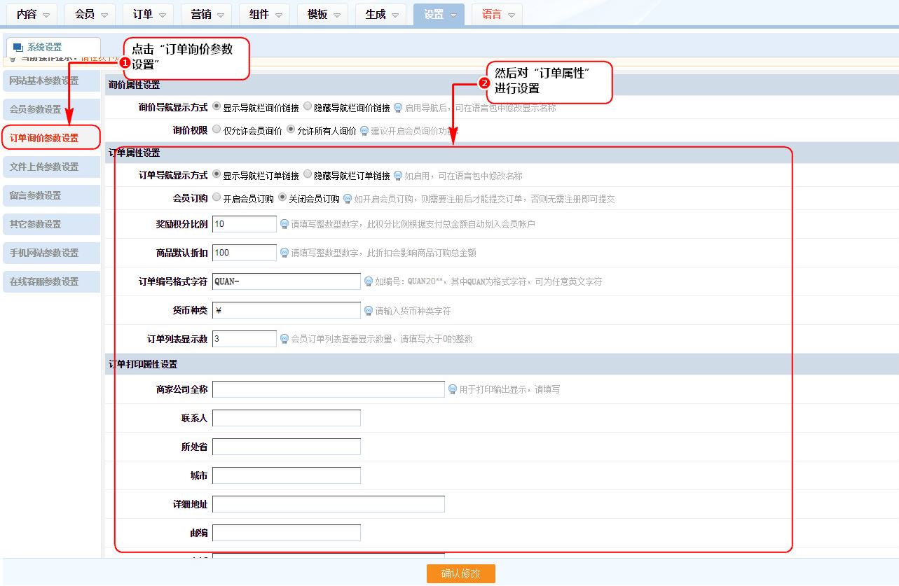訂單打印屬性設置