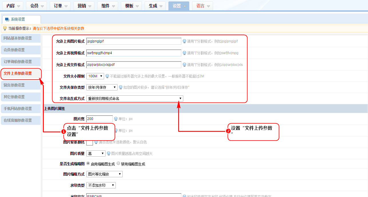1、允許上傳圖片格式:填寫圖片擴展名,不要填寫“.”,多個文件請用"|"分割格式,例如jpg|png|gif;