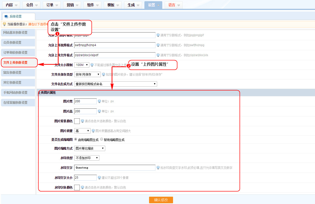 5、是否生成縮略圖:用啟用,在上傳圖片的時候會自動生成一張小圖;