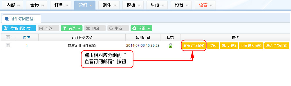 1、在郵件訂閱列表區,點擊相對應分組的“查看訂閱郵箱”按鈕;