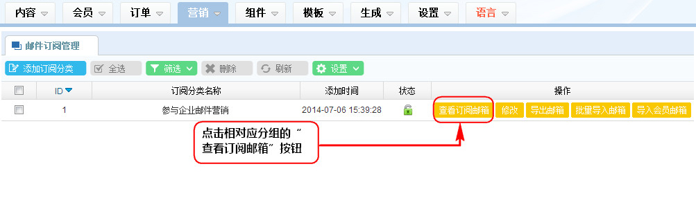1、在郵件訂閱列表區,點擊相對應分組的“查看訂閱郵箱”按鈕;