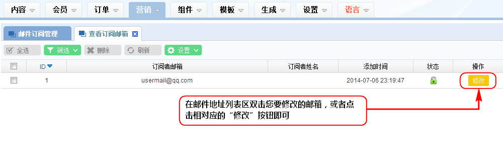 2、在郵件地址列表區雙擊您要修改的郵箱,或者點擊相對應的“修改”按鈕即可