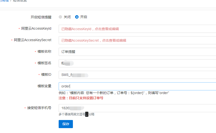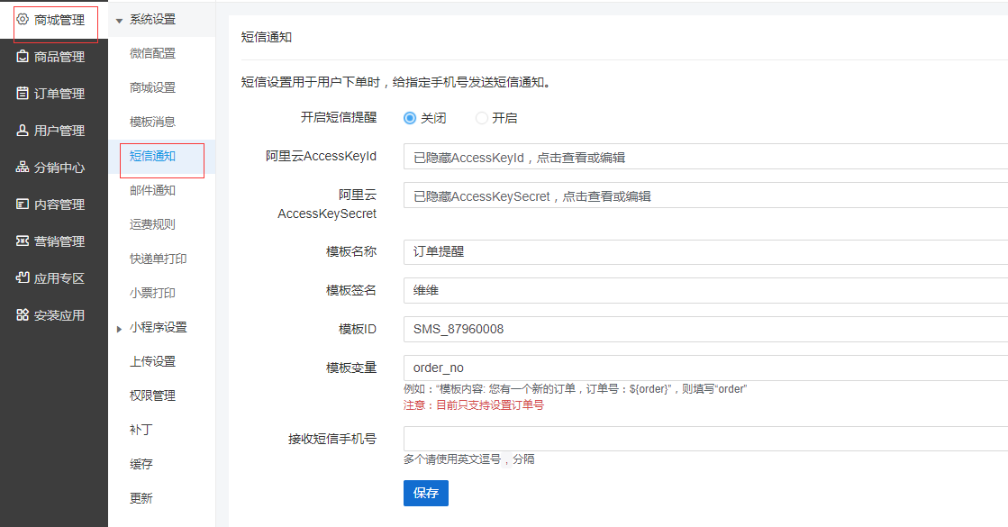 6. 將所有信息提交到商城后臺(tái)-短信設(shè)置