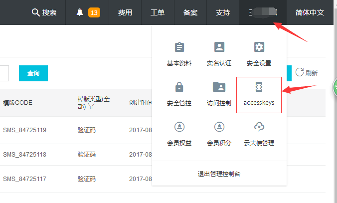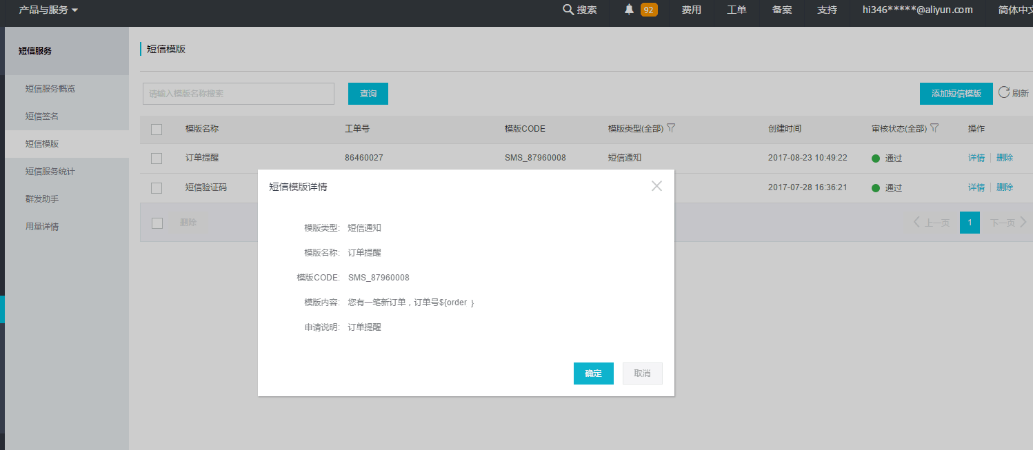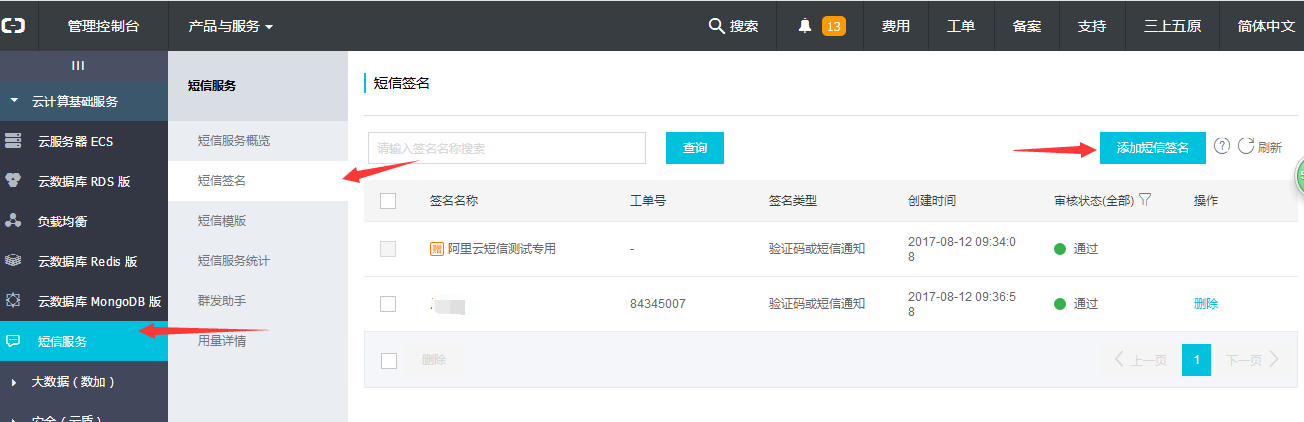 阿里云短信申請流程:
