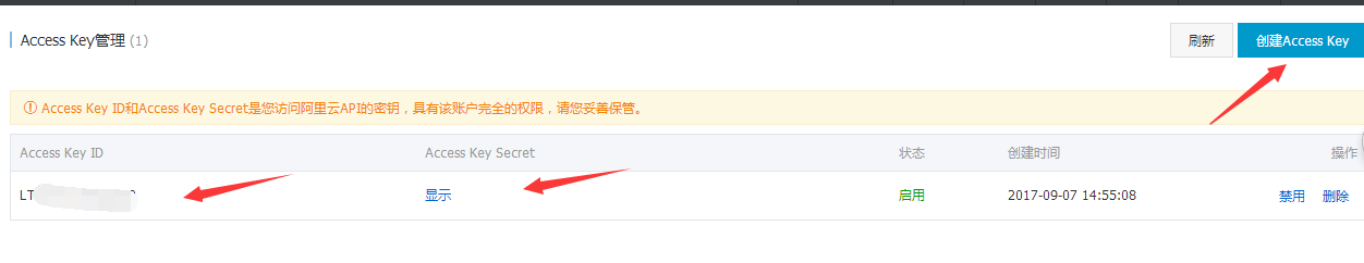 3. 創(chuàng)建好AccessKey