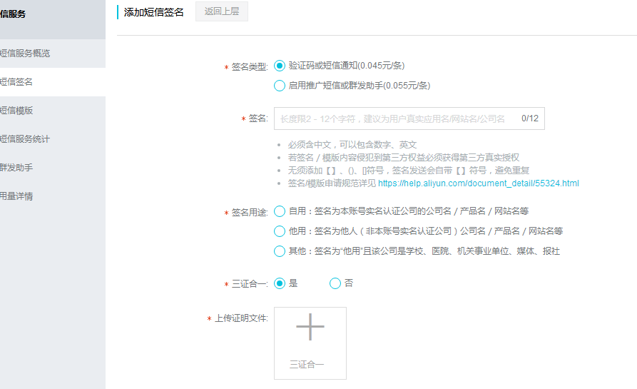 3. 創(chuàng)建短信簽名