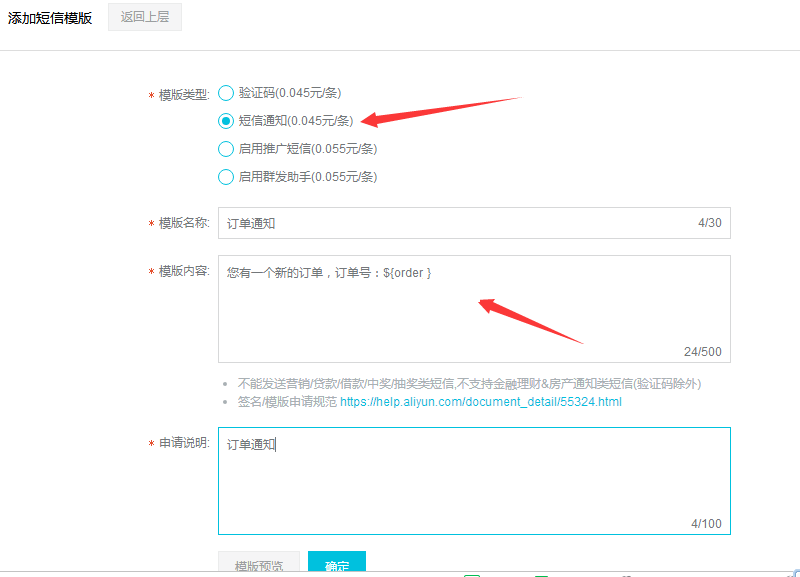4. 創(chuàng)建短信模版