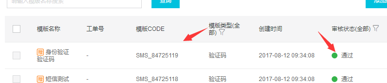 7. 審核通過后獲取模版CODE