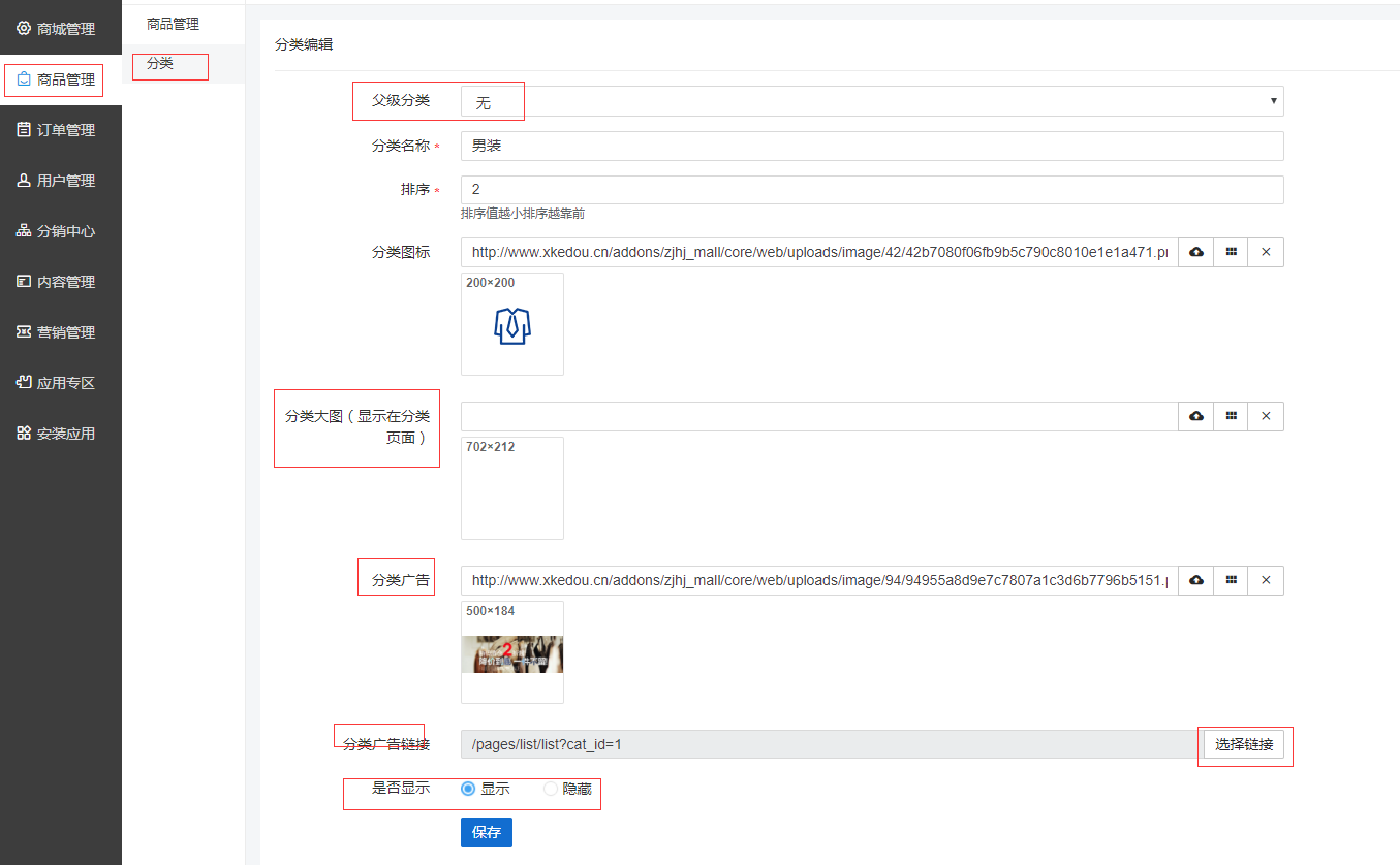 分類支持一級和二級分類分類可折疊