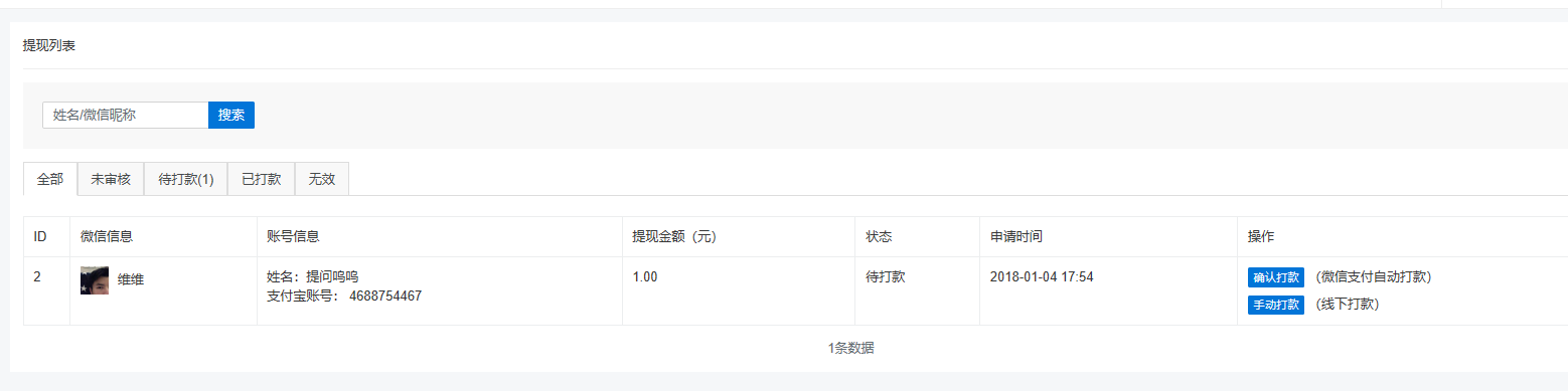 提現(xiàn)管理