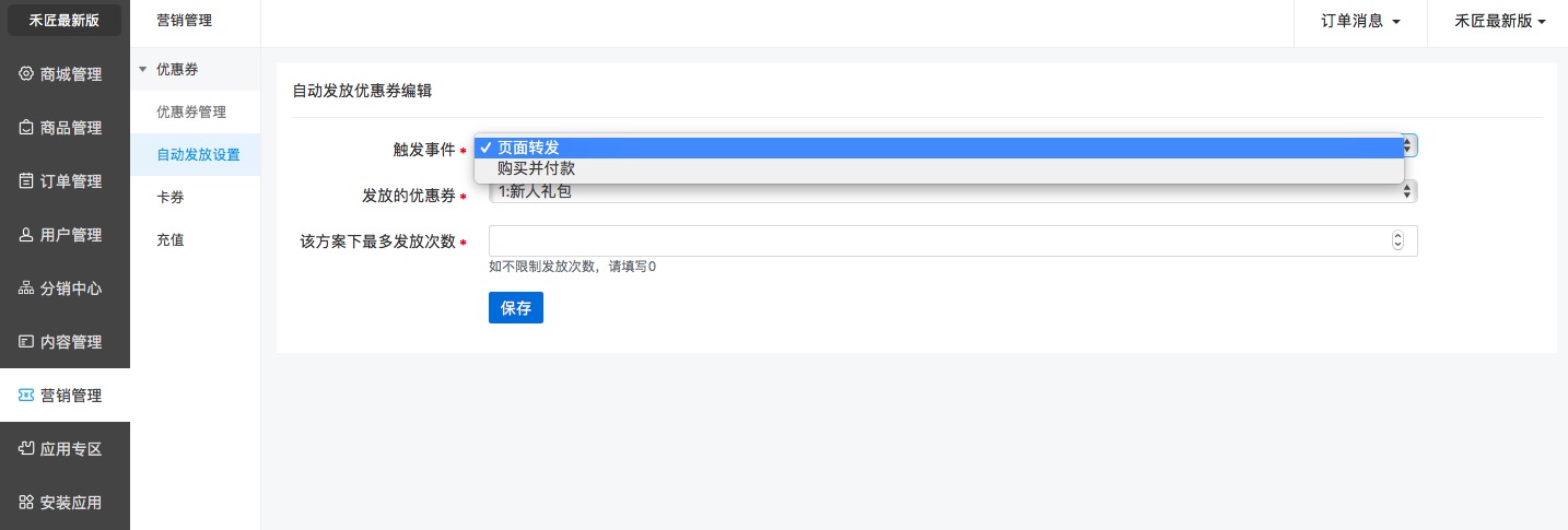 選擇觸發事件和發放的優惠券