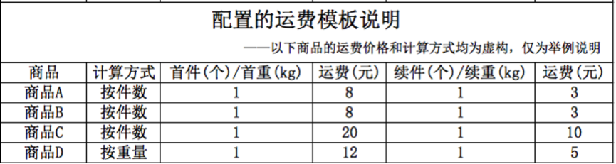 當(dāng)我同時(shí)購買2件商品A和2件商品B,因?yàn)檫@兩款商品都使用同一個(gè)運(yùn)費(fèi)模板,則只使用其中一款商品的首件運(yùn)費(fèi),其余商品直接按照續(xù)件的運(yùn)費(fèi)進(jìn)行計(jì)算,即購買2件商品A和2件商品B時(shí),系統(tǒng)計(jì)算的運(yùn)費(fèi)應(yīng)該為: