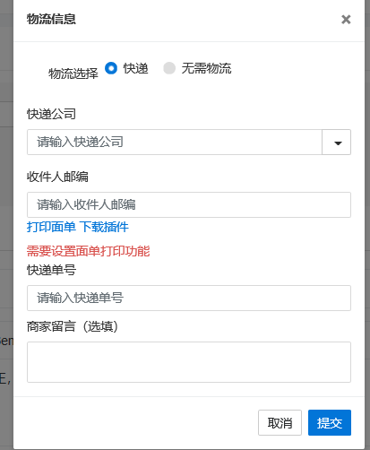 注:電子面單請咨詢當?shù)乜爝f公司或者快遞公司總部,其中郵政的電子面單必須用到郵政編碼,其他快遞郵編可不填